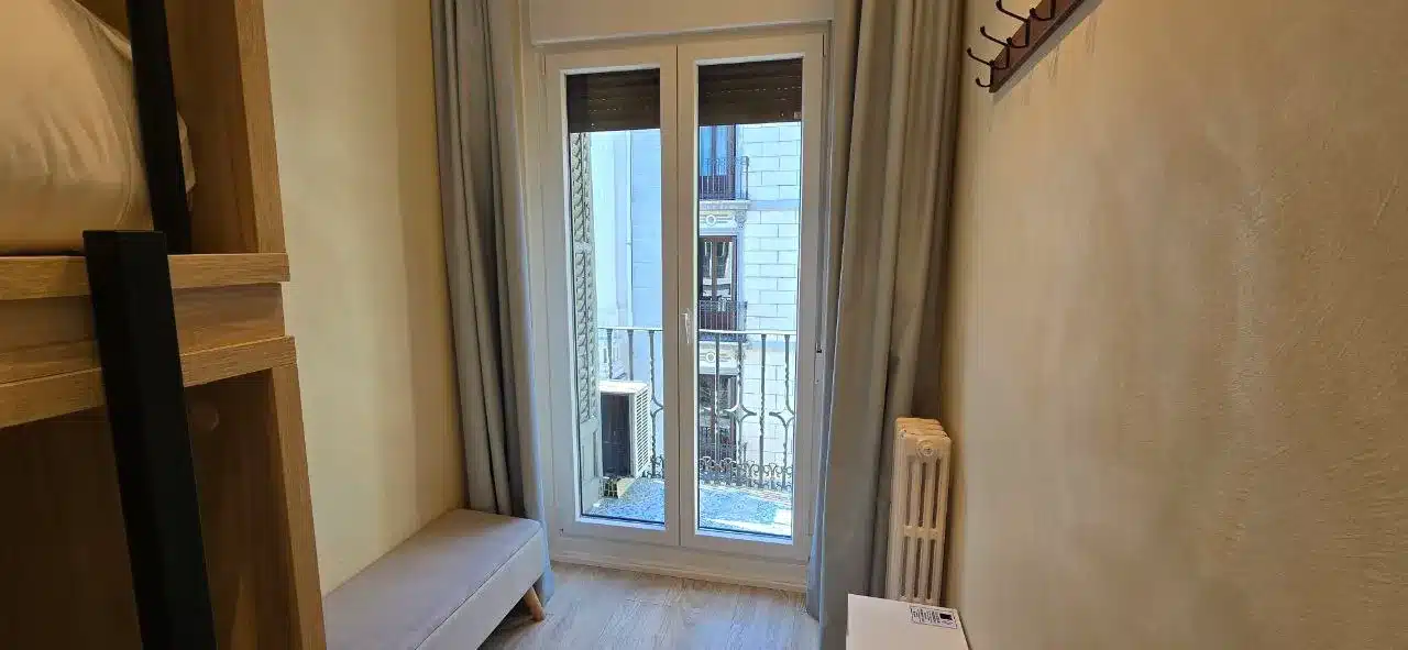La habitación doble cuenta con aire acondicionado, paredes insonorizadas y baño compartido fuera de la habitación. La habitación doble cuenta con suelo de parquet, zona de comedor, armario y vistas a la ciudad. La unidad tiene 1 litera.